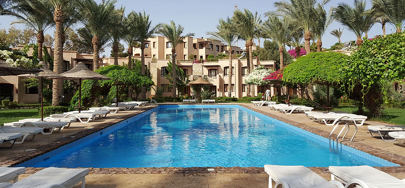 Hotellet er velegnet til både par og familier, der vil ned og slappe af på ferien, men også stadig have gode faciliteter for hele familien. Hotellet er super hyggelig og ligger på et stort og frodigt område, hvor små stier fører dig fra det ene poolområde til det andet. selve bygningerne er opført i arabisk inspireret stil, og består af 2-3 etagers bygninger, som er omringet af flot beplantning. Fra udendørsområdet er der en fantastisk udsigt udover Rødehavet og Tiran halvøen.